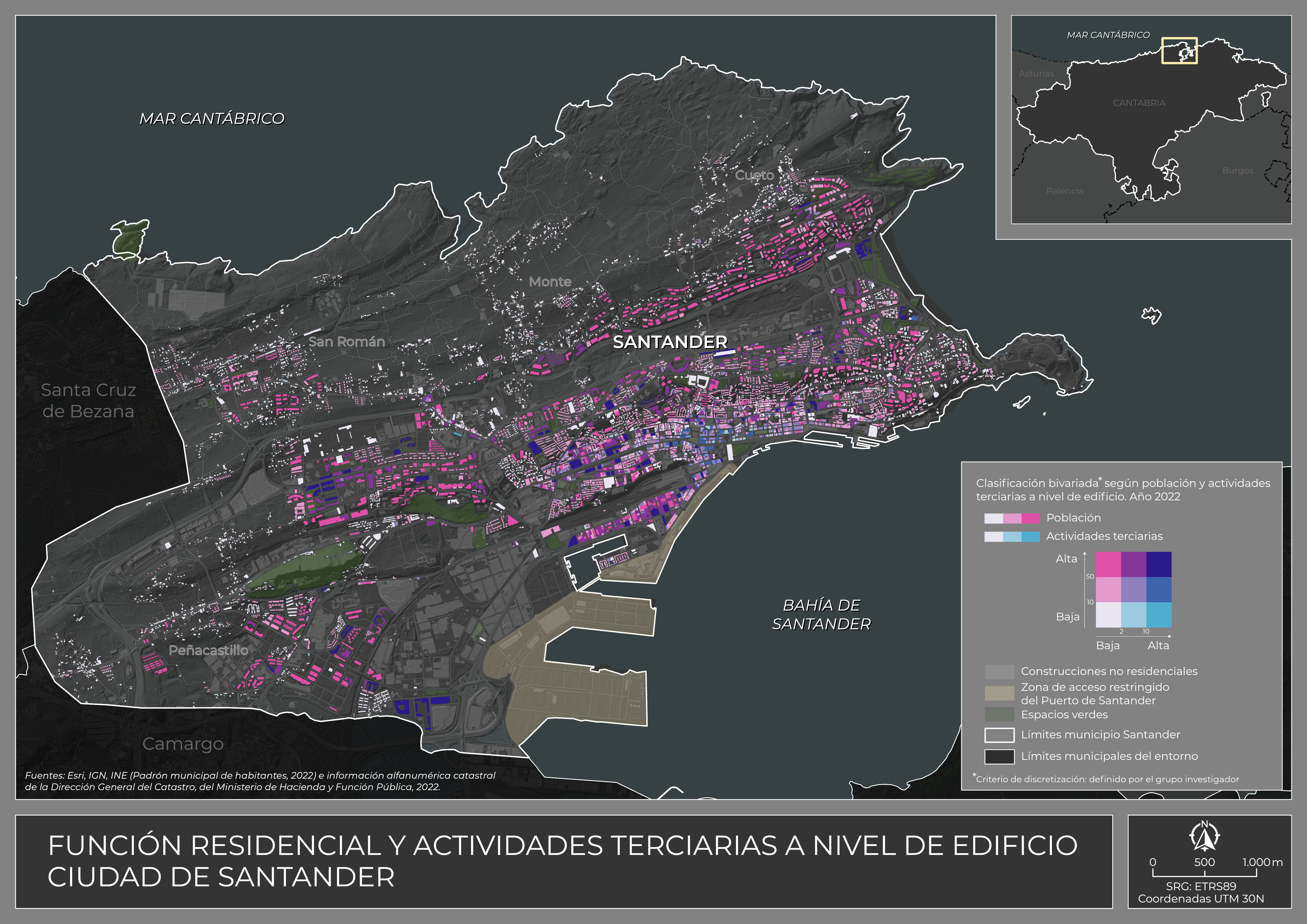 Lectura cartográfica intraurbana de la justicia espacial y la sostenibilidad a través de las funciones residenciales y terciarias de la ciudad de Santander (Cantabria, España).